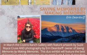In March the Cozens Ranch Gallery with feature artwork by Suzie Royce Cruse AND photography by Erin Deardorff owner of
