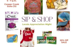 Shop our spring collection while you sip and snack! 20% off on all purchases. We have new apparel, wholesome food
