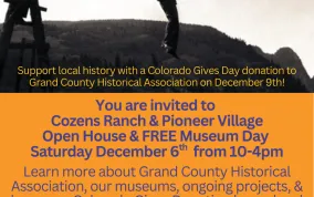 You are invited to Cozens Ranch & Pioneer Village Open House & FREE Museum Day Saturday December 6th from 10-4pmLearn