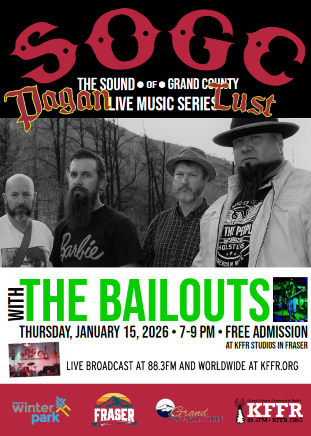 Fraser, CO 80442We’re kicking off our first of three Sound of Grand County (SOGC) events in 2026 with a night built for fans of rock, punk, and metal. This show is about loud guitars, raw energy, and coming together to have a blast. If you like your music heavy, gritty, and unapologetic, then this one’s for you.