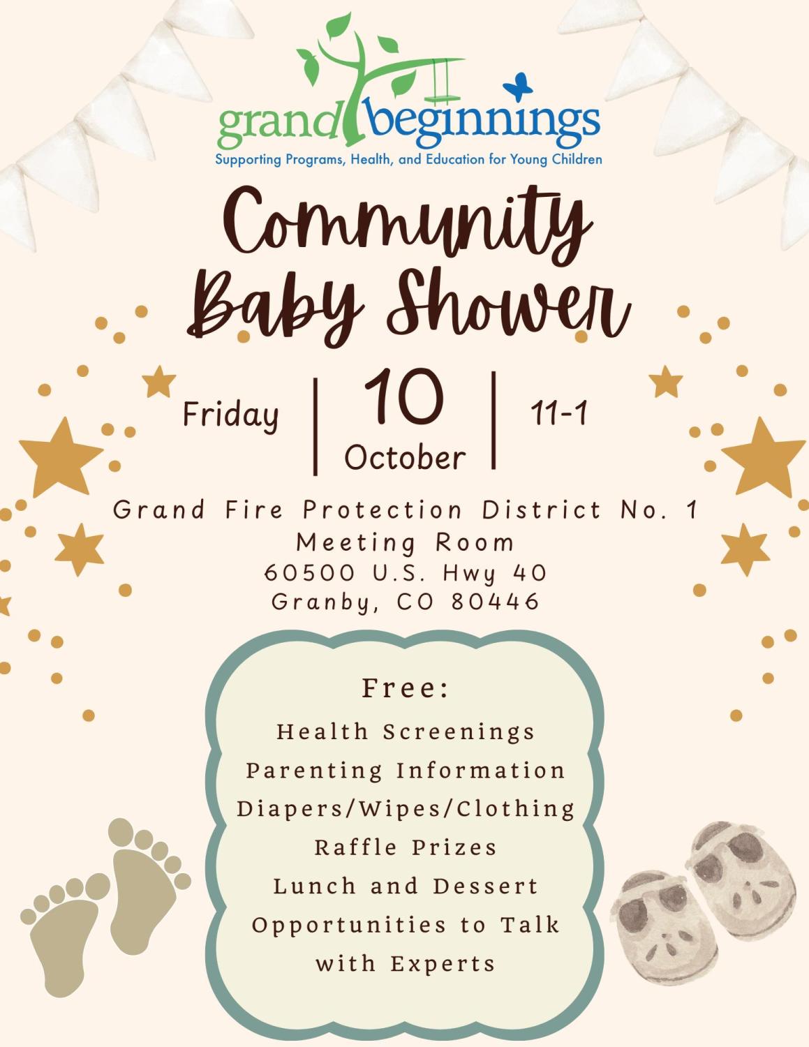 60500 US-40Granby, CO 80446The Community Baby Shower is more than just a resource fair. It is an event for new and expecting parents to ask questions, get connected to community programs, and of course to learn about resources available in Grand County — all in an enjoyable baby shower setting.